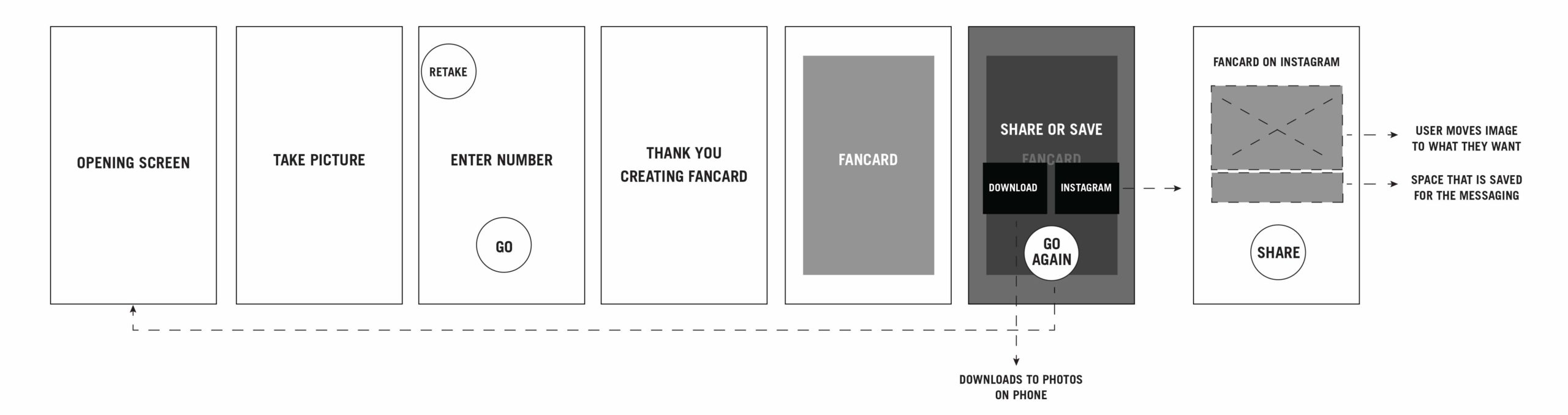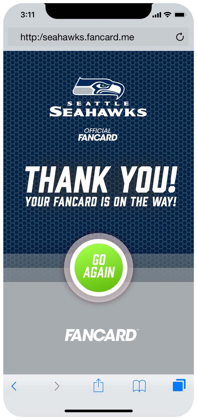 The user enters a url that’s been provided through email, outdoor banners or on the jumbotron. From there they will be taken through the steps to create a fancard of their own. After going through the steps, the person will be sent their fancard via a text message.