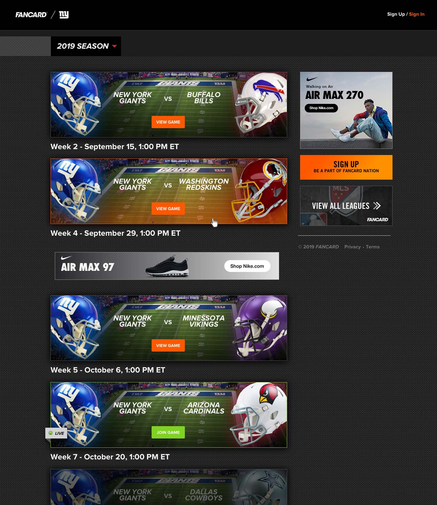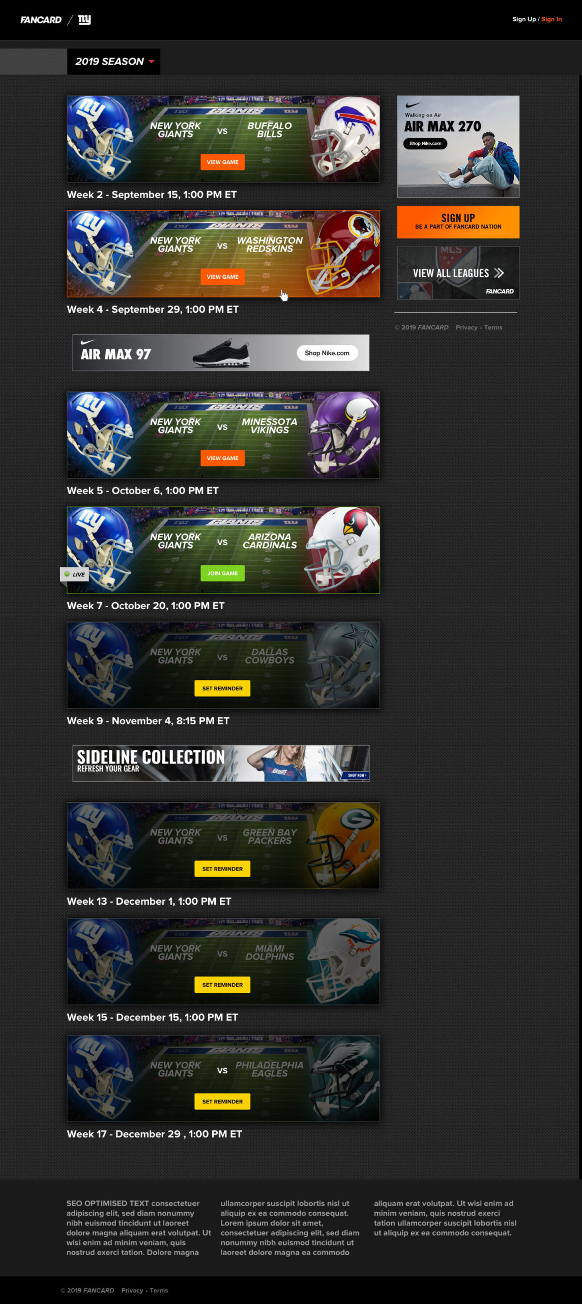 One video is a fancard introduction for the New York Giants football team. We made one for each team to promote to their fans. The other video is of the fancard flow.