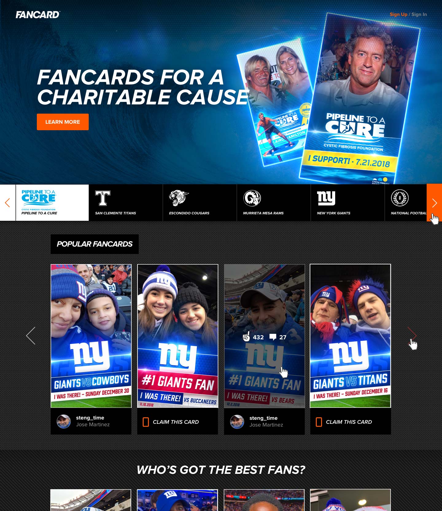 An online destination to experience fancards from your favorite teams and events. A place to share, discover, and be seen.